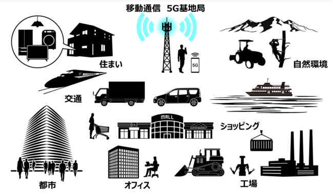 5Gの通信の利用は、国境を越えた人と人とのコミュニケーションから、交通、住まいやショッピング、オフィスや工場、自然環境や都市にまで広がっていくと考えられています。
