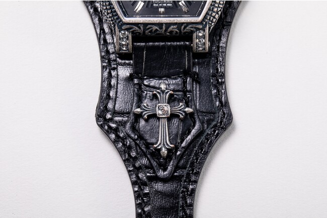 時計本体の魅力をより引き立たせる装飾パーツであるコンチョにも拘っています。クロス、ユリ、スター、クラウンなどのモチーフをベースに エッジーで洗練されたデザイン。アンティーク加工を施し風合いを感じさせます。