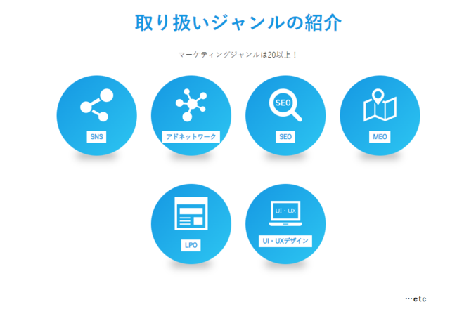 対応可能なマーケテイング領域は以下になります。
