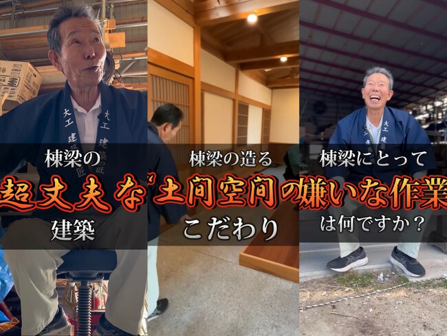 建築の匠(工場:愛知県大府市/棟梁:切中 健元)は、合同会社Rollbahrn[ロルバーン](本社:愛知県名古屋市/代表:築山 楓河)と共にTiktok運用を始め、棟梁の職人ならではのこだわりが評判を呼び、4月末日までに当初目標としていた総視聴回数500万PVを超える1000万PVを達成しました。合同会社Rollbahrnは、平均年齢23歳で、Tiktokの企画・撮影・投稿を行っています。20代と70代の異色のコラボによるショート動画が反響を呼んでいます。