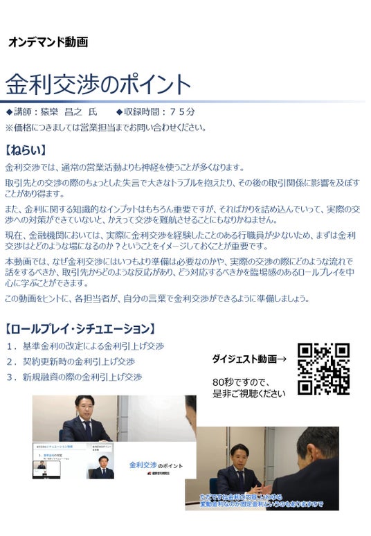 お客様本位を中心に据えた金利交渉をテーマに、株式会社経済法令研究会より動画教材を販売、また、あわせてアウトプット主体の研修も提供開始!