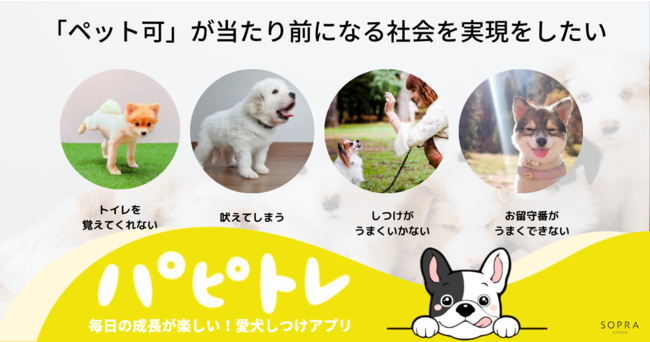 国内外でペットサロンや犬の幼稚園を16店舗運営するソプラ銀座株式会社(本社:東京都中央区、代表取締役社長:須田 哲崇、以下「当社」)は、はじめてワンちゃんを家族に迎え入れる人に向けたトレーニングアプリ「パピトレ」の開発のため、クラウドファンディングサービス「READYFOR」にてプロジェクトを開始し、2023年2月17日(金)より募集開始いたしました。