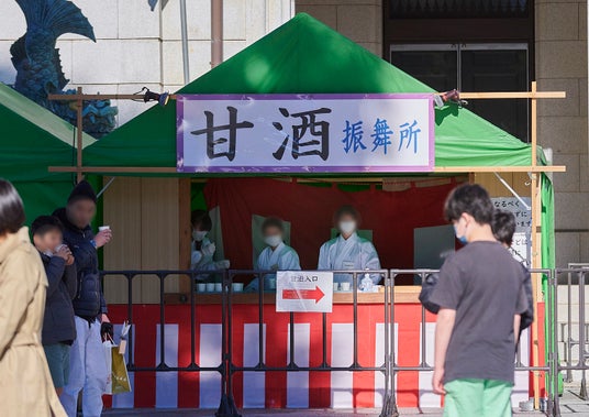また、酒蔵会社から奉納された清酒や、アルコールの入っていない温かい甘酒が参拝者に振る舞われます。