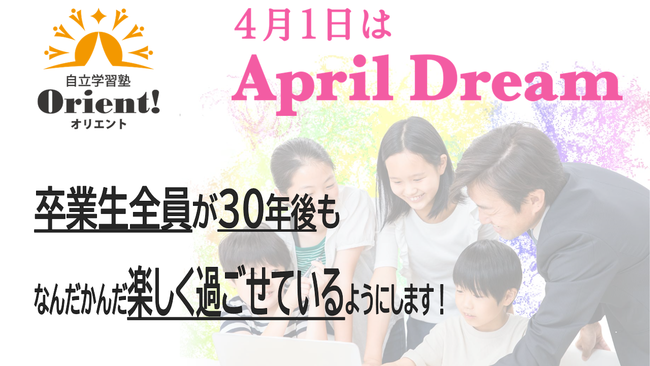 自立学習塾Orient!は、4月1日を夢を発信する日にしようとするApril Dreamに賛同しています。このプレスリリースは「自立学習塾Orient!」の夢です。