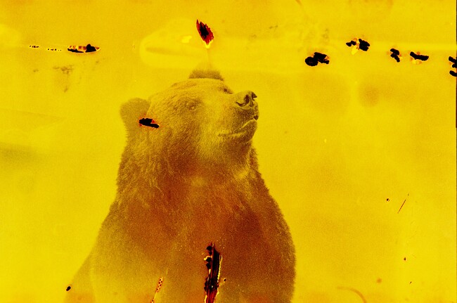外界と遮断された研究所の暗室から始まる体験は、人が思う理想の自然像を閉じ込めようとした「写真のプロセス」と、「被写体として捉えられた獣たち」とが織りなす共演の世界。そして続く、嘗て銀塩写真の制作に不可欠な水を調整していた地下室では、反転して獣たちが、理想の画から抜け出し、ありのままの混沌とした姿で、華やかに描き出されます。人が自然を脅かすように、獣たちを映し出すフィルムは、生活排水により侵食されながらも、獣たちの内側に眠る勇ましさ、狡猾さ、そして吉田が生き物に向ける愛おしさを、より一層浮き彫にしていきます。