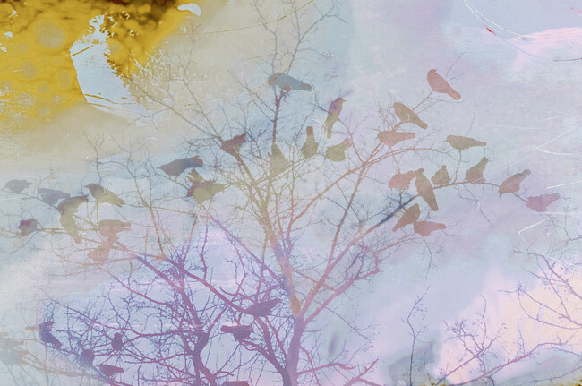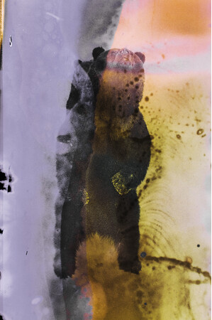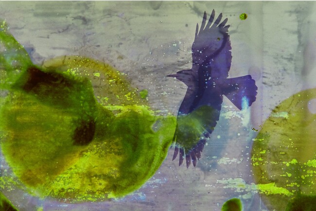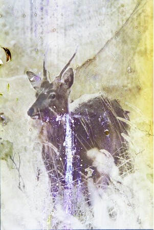 ある日、フィルム現像に失敗した私は落胆と共に大きな衝撃を受けた。ネガフィルムに大きくできた現像ムラが、その ネガに写る野生の鹿を侵食する脅威に見えたからだ。それはまさしく、わたしたちが自然に対して行なっている行為 そのものだった。 大きな環境破壊のニュースの影で、実は生活排水の水質汚濁への影響はとても大きい。日々意識せずに排出される化学薬品が自然界に与える影響を想像した私は、野生生物を撮影したネガフィルムを、私が日常使用する洗剤、化粧品、歯磨き粉など を混ぜて現像した。 結果、崩れながらも鮮やかに発色する世界と、強く生きる生き物の姿を見つけた。