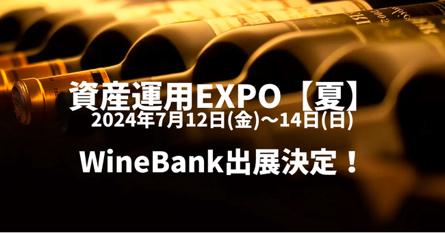 この度、株式会社WineBank(本社:東京都港区六本木4丁目12番8号 第6DMJビル 2階、代表取締役社長:中野 邦人)は、資産運用EXPO【夏】(2024年7月12日(金)~14日(日)、東京ビックサイトに出展いたします。