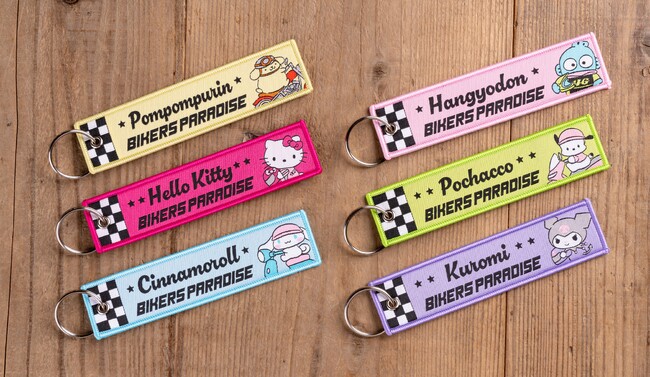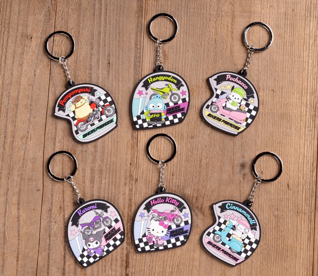 バイクに跨った愛らしいデザインは、サンリオキャラクターズとバイカーズパラダイスとのコラボレーションによる新規描き下ろし。キャラクターは「ポチャッコ」「シナモロール」「ポムポムプリン」「ハンギョドン」「ハローキティ」「クロミ」の6キャラクターが登場します。