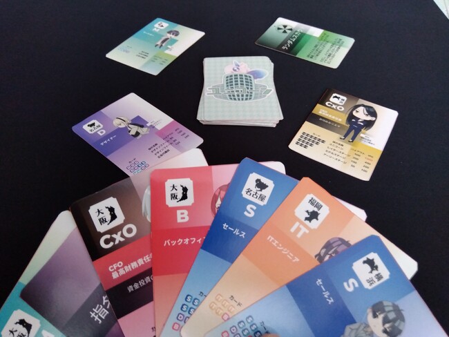 「ユニコーン」は「営業」「ITエンジニア」「デザイナー」「バックオフィス」の職種の人材カードをそろえて「広告代理店」「セールスレップ」「BPOサービス」「デザインファーム」「ロボットメーカー」といった企業を設立するゲームです。