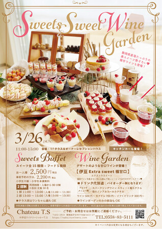 また、中伊豆ワイナリーシャトーTS内にて、苺のスイーツをメインに、デザートのような甘口ワインも楽しめる一日限りのスイーツブッフェイベント「Sweets&Sweet Wine Garden2023」を開催します。