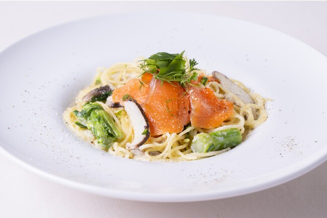 【春限定アラカルトメニュー】春の恵みを満喫♪富士山サーモンと菜の花のクリームパスタ