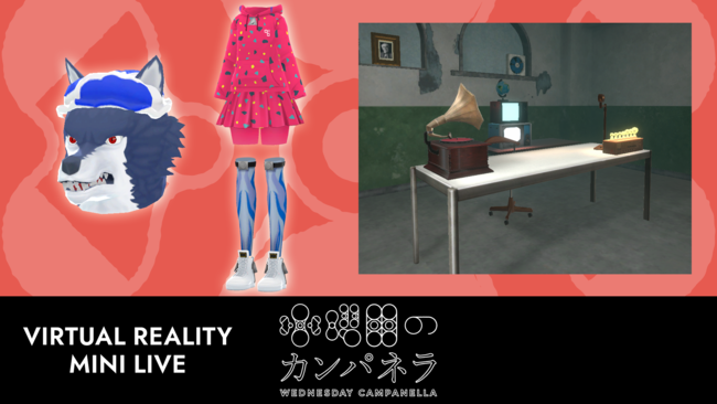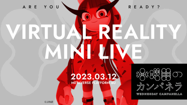 水曜日のカンパネラによるバーチャル空間での音楽イベントを初開催。主演/歌唱担当の詩羽(うたは)が、新曲「赤ずきん」のミュージックビデオに登場する、JINOがキャラクターデザインを担当したオリジナルのアバターになり、大人気曲の「エジソン」や、「赤ずきん」などを披露する特別ライブとなります。音楽ホールで始まるライブが、途中で空間をも移動してしまうメタバースならではのダイナミックな体験をお楽しみください。