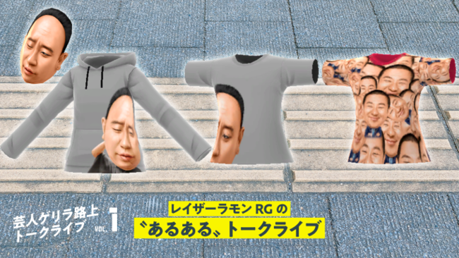 バーチャル上に再現された大阪の街のどこかに、レイザーラモンRGが”あるある”を披露するトークライブを開催。参加者からお題をもらいながら時間の限りあるあるを歌い続けます。さらに今回はあのものまねバージョンのアバターで登場しますので、是非探して”あるある”をリクエストしてみてください。