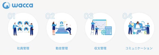 「wacca」はSES企業様を中心に好評をいただいているエンジニアトータル管理サービスであり、バージョンアップによりさらなる機能強化を実現しました。 人材管理、勤怠管理、収支管理、コミュニケーション、ワークフローの機能を備え、業務コストの圧縮や売上施策の推進を支援します。
