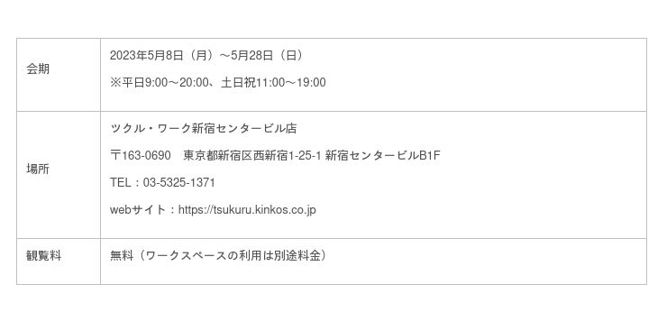 TEL:03-5325-1371 webサイト:https://tsukuru.kinkos.co.jp