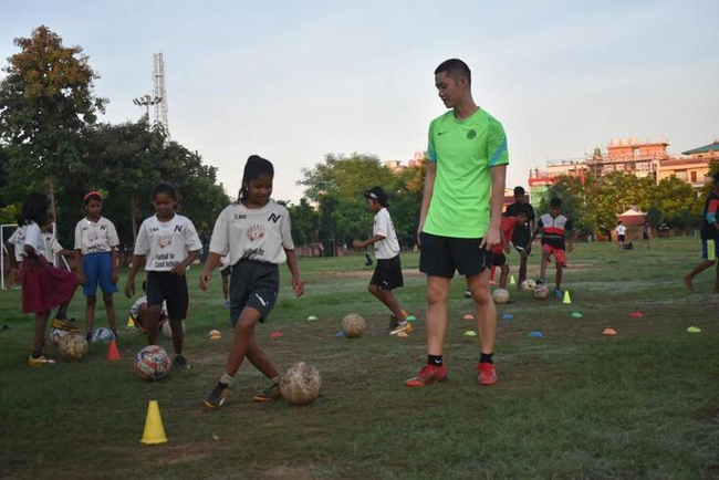 ブッダガヤ地域にてサッカースクールを毎日開講し、広場で子ども達を対象に、男女関係なく一律にサッカー指導を行っています。