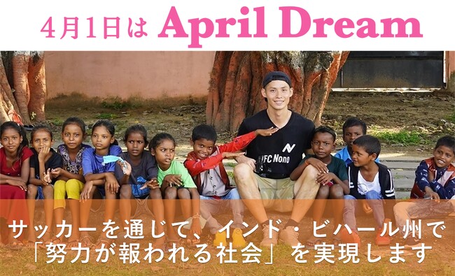 一般社団法人FC Nonoは、サッカー活動をフックとした健康管理、栄養改善や保健指導、人材育成プログラムなどを通じて、インドの子どもたちの夢の実現をサポートし、努力が報われる社会の実現を目指しています。当社は、4月1日を夢を発信する日にしようとするApril Dreamに賛同しています。このプレスリリースは一般社団法人FC Nonoの夢です。