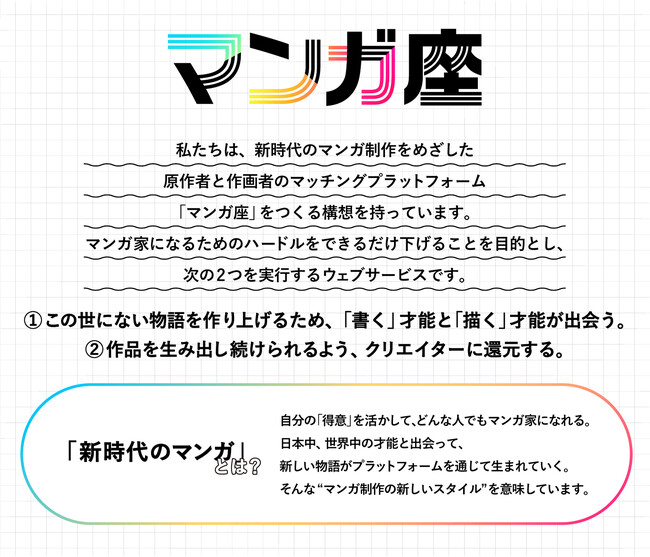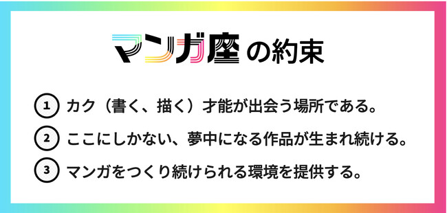 「マンガ座」において我々が最も重要視することは、『マンガクリエイターの誕生と支援』です。