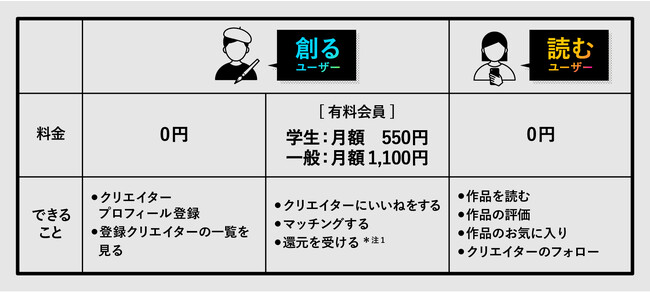 マンガ座には「創るユーザー(クリエイター)」と「読むユーザー(読者)」が存在します。