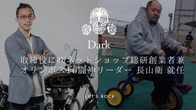 バイカー&ライダース向けのハイエンドなファッションブランドを企画・販売する株式会社Dark(本社:東京都目黒区 代表取締役:高田 竜次)は取締役にオリンポス16闘神リーダー「長山衛」が就任したことをお知らせ致します。同時に4月6日にコーポレートページを新設、公開いたしました。
