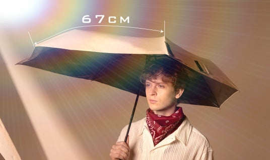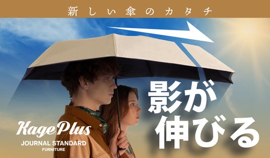 今回のコラボコレクションでは、〈GODO DESIGN〉で昨年ヒット商品となった影が伸びる傘(R)【KAGE+】が登場。通常の折り畳み傘とは違い、開くと先端が前方にせり出すように伸び、陽射しの強い日には、太陽に先端を向ける事で、影を伸ばすように身体全体を影で覆う事ができ、雨天時にはリュックやベビーカーなど濡らしたくない物を雨から守るようにして使う事ができるのが最大の特徴。
