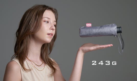 ゲリラ豪雨にも耐えられるように、7本骨構造でありながら、耐風試験11m/sに耐える耐風性能を搭載。大きさは大人2人がすっぽり入れる最大辺105cmを確保しつつ折り畳むと高さ23cm重さ243gとコンパクトで軽量だからカバンに常備できるのが嬉しいポイント。