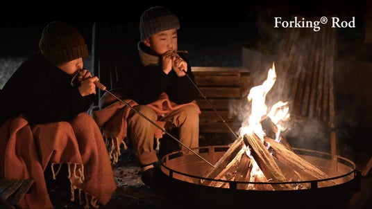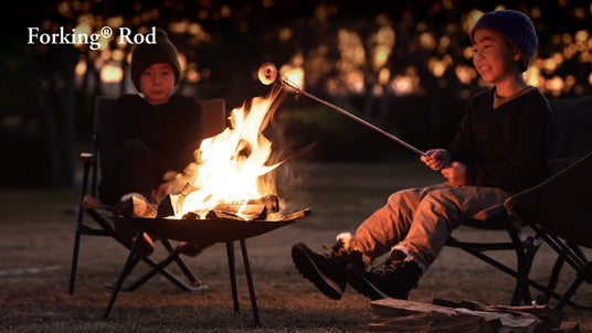 時代を超越した焚火スタイル Forking(R)︎ 。火吹き棒と炙り焼きフォークが一つに完結した究極の相棒「Forking(R)︎ Rod」とともに焚き火を楽しもう。