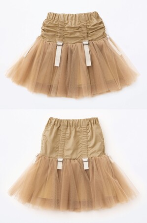 ウエスト部分はシワになりにくい素材を使用し、チュール部分は、