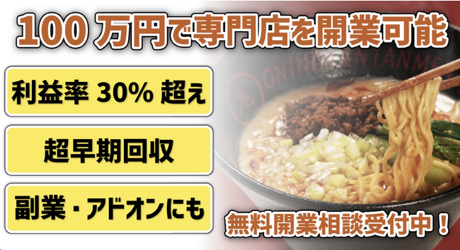 鬼の担々麺は、ライセンス加盟店を募集しております。キッチンカーをはじめ、実店舗や飲食店様へのメニュー提供も行っております。加盟をご検討いただいている店舗様は、下記よりお問い合わせください。(フランチャイズハジメルくんへのリンクとなります)