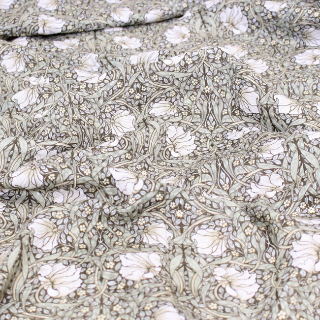 ウィリアム・モリスの「ピンパーネル」は、19世紀に発表されたデザインですが、今でも多くの人々に愛されています。縦に伸びる緑色の蔓植物の上に、小さな花がびっしりと散りばめられ、その美しいデザインと独特の色彩は、時代を超えて魅力を保ち続けています。