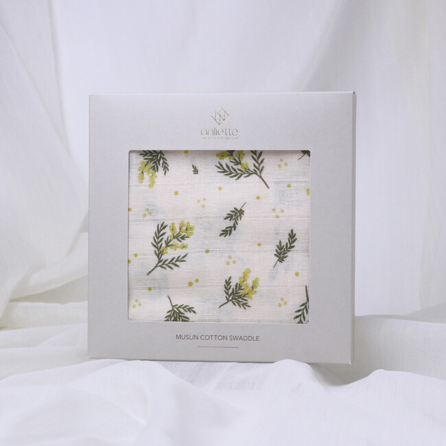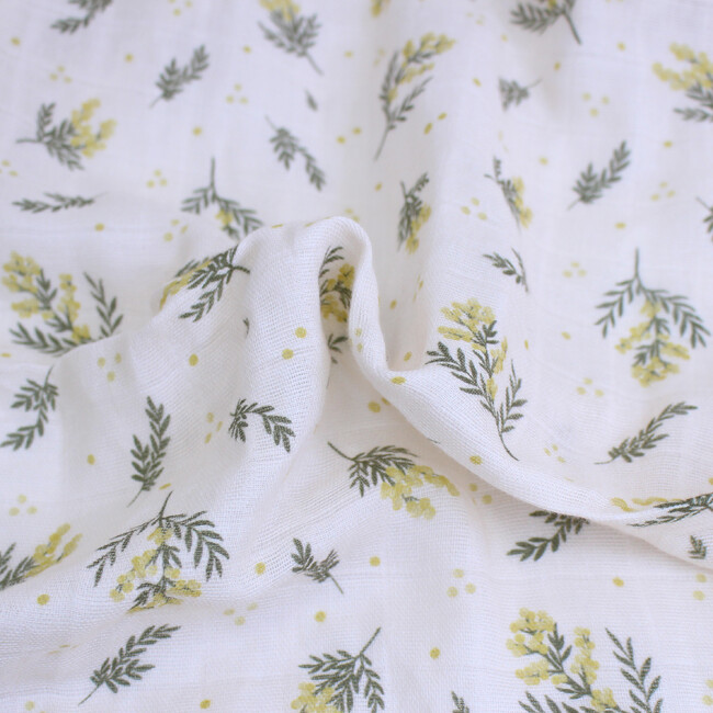 春の訪れを知らせ、愛と幸せを運ぶと言われる花・ミモザ。産まれたばかりの赤ちゃんにぴったりの柄です。