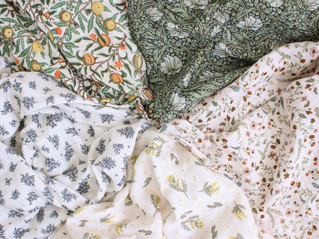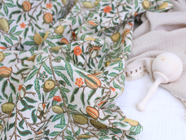 一世紀以上を経た今でも少しも新鮮さを失わず、世界中で根強いファンに愛され続けているウィリアム・モリスのデザイン。変わらず愛されるデザインで、赤ちゃんを優しく包んであげてください。