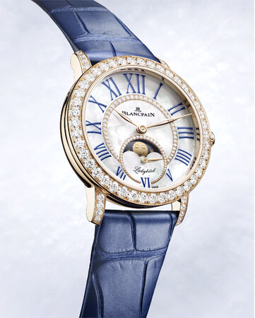 太陽の季節が近づくにつれ、私たちはごく自然と、太陽の下で輝く最も上品なカラーのワードローブを選びますが、ブランパンのレディバード コレクションも例外ではありません。2つのスモールセコンドとムーンフェイズ複雑機構を誇らしげに表示しながら、最上の装飾品となります。マザーオブパールダイヤルには70個のダイヤモンドがセットされ、ミッドナイトブルー、ピーコックグリーン、フォレストグリーン、ライラック、ターコイズなどのカラフルなローマ数字があしらわれています。また、レッドゴールドまたはホワイトゴールドモデルのストラップにも、これらのバリエーションが採用されています。