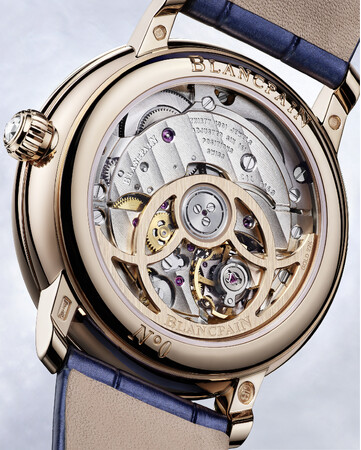 直径34.9mmのケースを持つレディバード カラーズの新モデルには魅力的なバランスが備わり、合計約2カラッ ト以上のダイヤモンド59個を引き立てます。マニュファクチュール ブランパンは、非常にエレガントでカラフルなタイムピースを生み出すことで最高の成果を発揮し、ジュエリーをとおして機械式時計製造の魔法がもたらされます。レディバード カラーズ モデルではハイエンドなジェムセッティングが行われ、輝きが生まれるよう熟練のセッティング職人が細心の注意を払って手作業で調整を行います。スモールセコンドではキャリバー1163が、ムーンフェイズではキャリバー1163Lが、やさしく刻みます。4日間のパワーリザーブとシリコン製ヒゲゼンマイを備え、 正確性、快適性、スタイルを融合して毎日の生活を送ることができるようにデザインされています。主要な部品はきめ細かに装飾され、技術的な機能だけでなく、美的な美しさも備えています。また、ケースカラーに合 わせたゴールド製ローターには、ダイヤルのデザインと調和したサーキュラーパターンのオープンワークが施されています。表側と裏側のどちらを見ても、ブランパンのこの新作は、高級時計製造の真髄を体現しています。