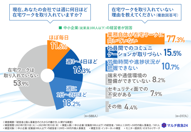 在宅ワークの実施率は4割以上。一方で在宅ワークを取り入れていない理由も明らかに