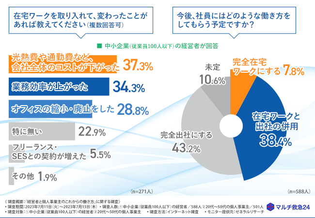 「マルチ救急24」(本社所在地:東京都江東区)は、中小企業(従業員100人以下)の経営者と20代~50代の個人事業主を対象に、「経営者と個人事業主のこれからの働き方」に関する調査を実施しました。