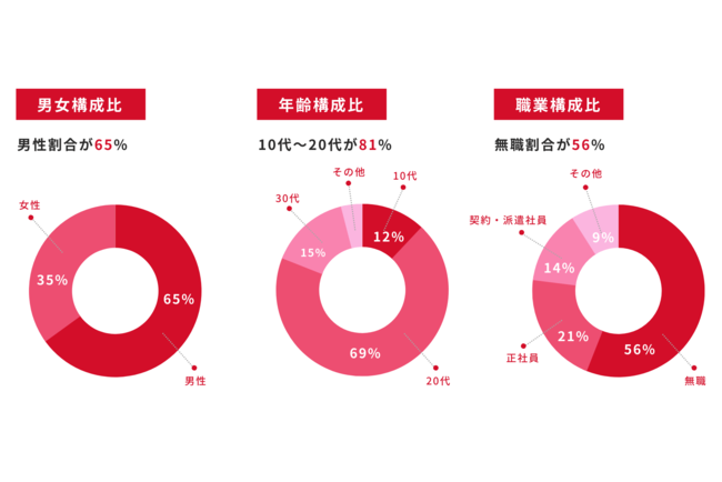 10~20代の登録者が多く、すぐにでも仕事がしたい無職の割合も多いことが特徴としてあげられます。