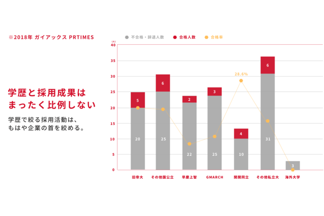 また、学歴と採用成果はまったく比例しないというデータもあることから、学歴で絞る採用活動はもはや企業の首を絞めると言っていいでしょう。