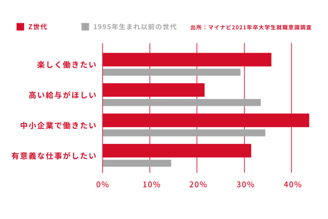 しかし、現代の求職者の価値観は、楽しさや働く意義といった「内部要因」を重視するように移り変わっています。