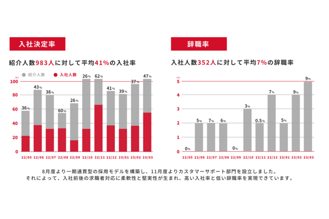 また、年間で約1,000名以上の入社を実現させており、その辞職率は驚異の9%です。