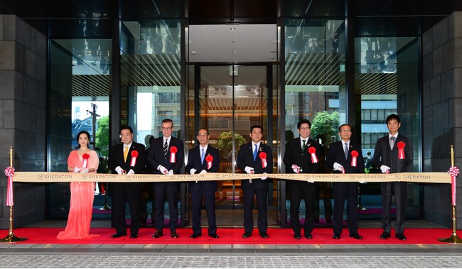 (左から)里アンナ、シェラトン鹿児島総支配人 戸田猛樹、マリオット・インターナショナル 日本・グアムエリアヴァイスプレジデント カール・ハドソン、南国殖産株式会社代表取締役社長 永山在紀、鹿児島県知事 塩田康一、鹿児島市長 下鶴隆央、南国ホテルズ株式会社代表取締役社長 伊牟田 均、沢村 一樹