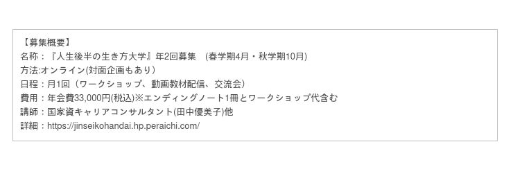 『人生後半の生き方大学とは?』~人生の終わりを考えるからこその『今』~
