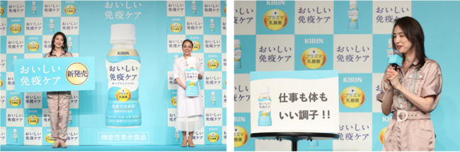 これに伴い、イシハラクリニック副院長 石原新菜先生、新CMにも出演中の天海祐希さんをゲストにお招きし、『体調管理に選ばれて好評!「キリン おいしい免疫ケア」新商品発表会』を4月5日(水)にEBiS303・多目的スペースにて実施しました。