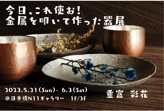 株式会社POP ROCK(本社:東京都中央区)が運営する「日本橋N11ギャラリー」は、2023年5月21日(日)から6月3日(土)まで金属造形作家「重富彩花」の展示「今日、これ使お!- 金属を叩いて作った器展」を開催いたします。 【Webサイト】https://n11-gallery.com