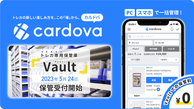 株式会社東京トレカ取引所(代表:アレックス・アラム)は、2023年5月17日より、鑑定済みトレカ専門のデジタルプラットフォーム「カルドバ」で「ヴォルト=(金庫・保管庫)」への保管受付を開始いたします。