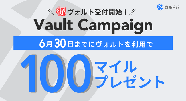 2023年5月31日までにカルドバへ会員登録(本人確認まで)頂くと、300マイルをプレゼントするキャンペーンを実施中。またヴォルト機能のリリースを記念して、2023年6月30日までにヴォルトを利用していただいた方全員に100マイルをプレゼントするキャンペーンを本日から実施開始。