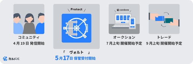 カルドバは、鑑定済みトレカをいつでも何枚でも最適な環境に預けられる「ヴォルト」のほか、自身が保有する鑑定済みトレカをデータ化することによって、より安全・速やかになる「オークション」と「トレード」、トレカ市場のホットトピックが集まり愛好家同士でつながることもできる「コミュニティ」という「4つの機能」を提供してまいります。