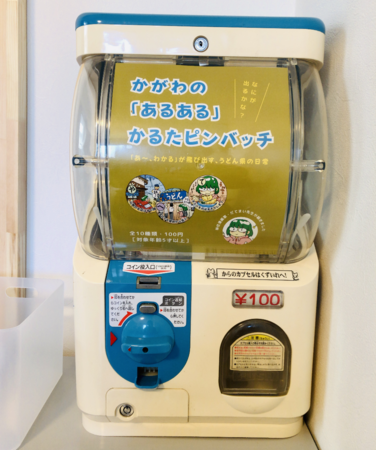 当方のオリジナルコンテンツとして、100円ピンズ『かがわあるあるかるた』を販売しています。『かがわあるあるかるた』は、宮城県から香川県に移住した漫画家・だてまい氏とコラボレーションし、“地元の人には当たり前だけど、よそから見たらちょっとヘン?”な地元の光景を1コママンガにしたコンテンツです。高松市木太町のコワーキングスペース「チョイビズプラザ」限定で3月下旬より販売し、好評いただいています。