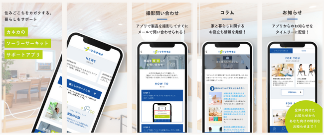 『日本の四季を通じて快適に暮らせる”理想の住まいづくり”』をめざす株式会社カネカソーラーサーキットのお家(本社:東京都港区、代表:堀江 康則)は、2023年11月1日にオーナー様向け暮らしサポートアプリをリリースいたしました。またそれに先立ち、9月1日にはホームページをリニューアルしました。ソーラーサーキットをこれから建てるお客様への情報提供およびソーラーサーキットで暮らされるオーナー様へのアフターフォローを強化し、省エネ性の高い住宅の普及に取り組んでまいります。