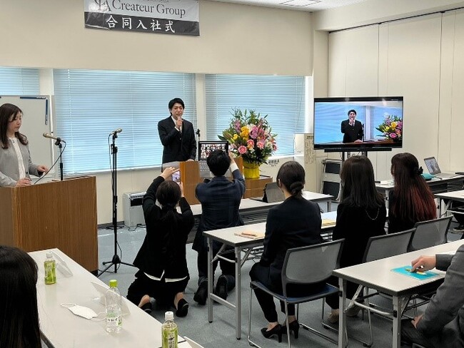 全国80店舗400名在籍する美容サロンを運営する株式会社Createur(クレアトゥール)(所在地:広島市中区、代表取締役:乙津 健太朗)は、2023年4月3日(月)に79名の2023年度新入社員を迎え、入社式を執り行いました。本年度は、昨年に引き続き対面での実施に加え、全国各サロンへのライブ配信を行い、オンラインを活用した形で実施いたしました。